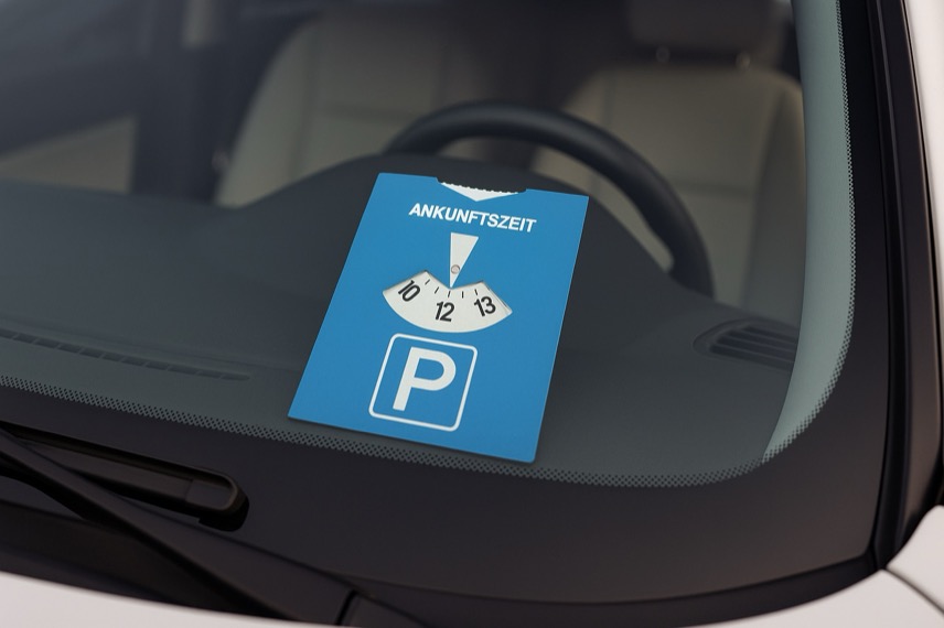 - Immer eine genormte, blaue Parkscheibe im Auto bereithalten
