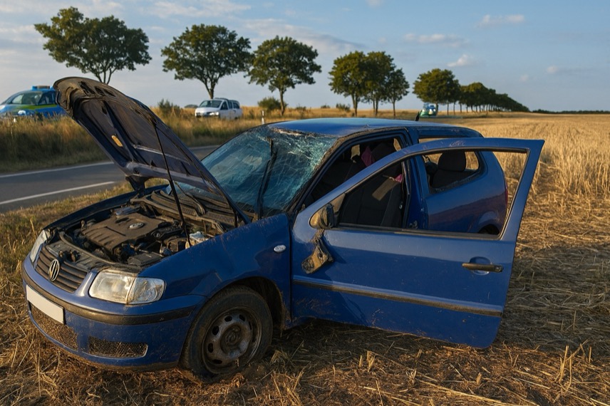 Der Unfall ereignete sich am Mittwoch, dem 30. Juli 2025, gegen 05:50 Uhr auf der B185 zwischen Aschersleben und Ermsleben. Der Fahrer, ein 25-jähriger Mann aus der Region, war mit einem VW in Richtung Ballenstedt unterwegs. Nach bisherigen Erkenntnissen der Polizei kam er auf einer geraden Strecke aus bislang ungeklärter Ursache nach rechts von der Fahrbahn ab. Das Fahrzeug überfuhr einen Leitpfosten, geriet auf den angrenzenden Acker und überschlug sich dort mehrfach. Der Wagen kam etwa 50 Meter abseits der Straße völlig zerstört zum Stehen.