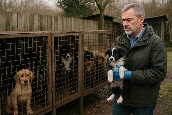 Die Hunde, hauptsächlich Border Collies und Labrador-Welpen, wurden in kleinen Käfigen gehalten, ohne ausreichende Versorgung und Pflege. Amtstierarzt Dr. Rainer Miethig zeigte sich schockiert über die Zustände: “Man denkt sonst, dass sowas nur im Ausland passiert, aber leider ist das auch bei uns der Fall.”