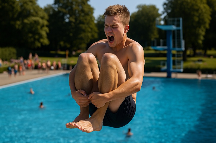 Die Arschbombe ist mehr als nur ein Kinderspaß. Sie ist eine Kunstform, ein Statement – und in Wernigerode inzwischen ein Event mit Kultpotenzial. Nach dem riesigen Erfolg der ersten Auflage im Sommer 2024 geht der Wettbewerb 2025 in die nächste Runde. Veranstalter ist erneut das beliebte Waldhofbad, das mit seinem Sprungturm und großzügigem Außenbereich die perfekte Bühne bietet.